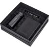 A high quality ball pen is combined with a carbon fibre-look keyholder and card holder in an elegant black, 2-piece presentation box.